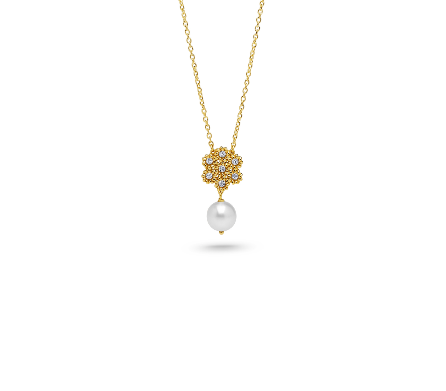 19.2kt yellow gold necklace with diamonds and Akoya pearl