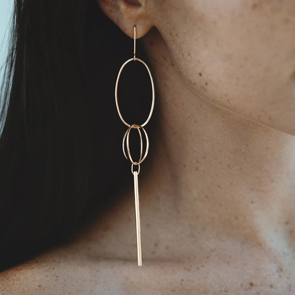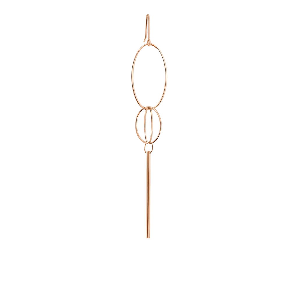 Vanrycke's famous ultralight single earring with a hippie-chic look, now available in an XL version. Handcrafted in 18-karat rose gold, it's a bold, sensual, and incredibly comfortable piece that complements and enhances any look with a touch of irreverent and elegant style.