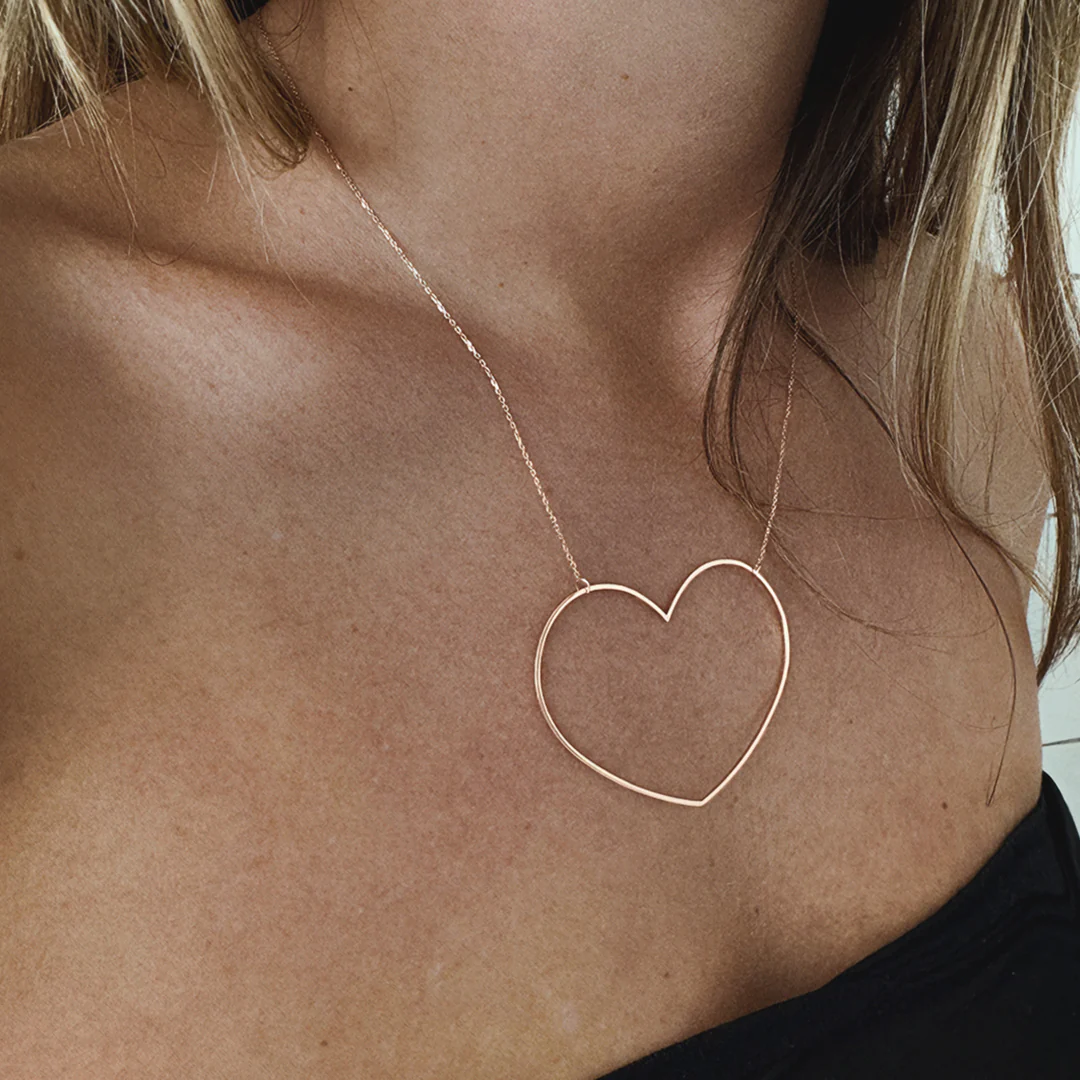 Inspirado nos Rolling Stones, este colar em ouro rosa 18k revela um coração de proporções perfeitas.