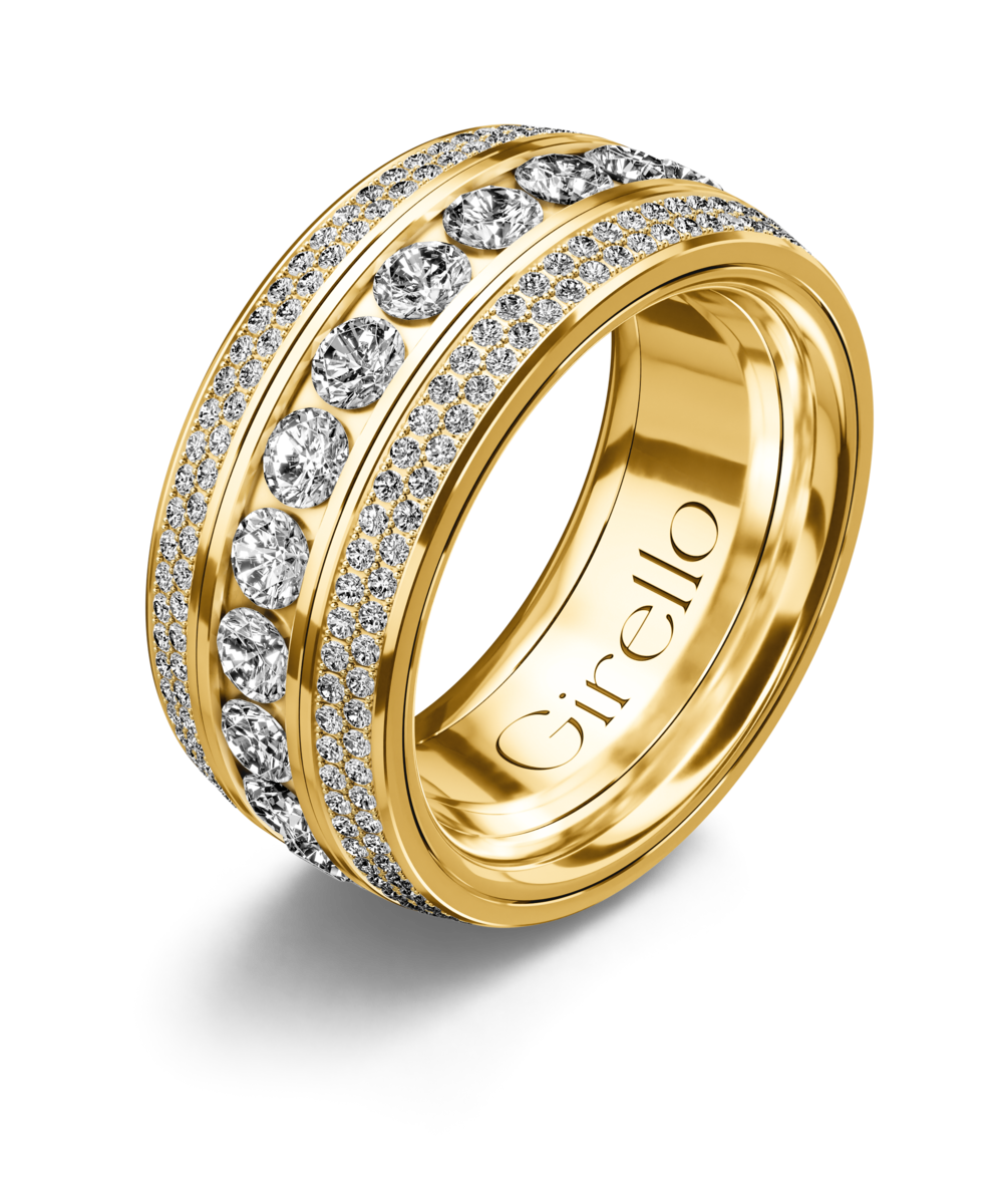 18K玫瑰金戒指,镶嵌蓝宝石和钻石。