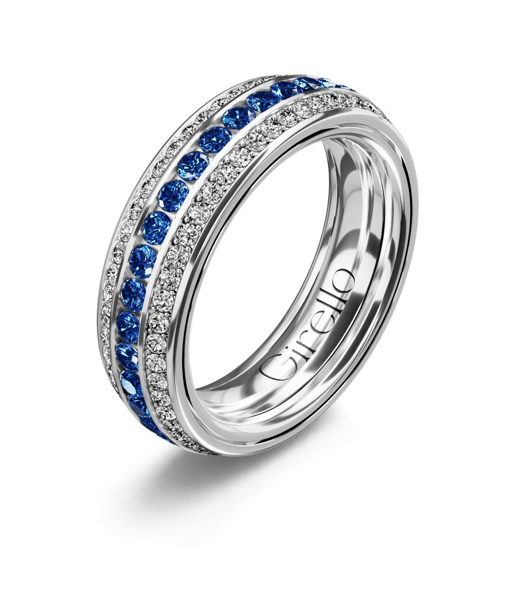 铂金950戒指,镶嵌蓝宝石和钻石。